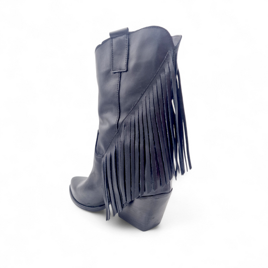 Mezzo Stivale Donna Texano con Frange in Pelle Nero